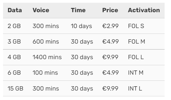 Vala Mobile 科索沃国内长途电话区号是00381,通常我们把它写成+00381、00381-、(00381)、(00381),当然科索沃国际区号前面的0是可以忽略,所区号也写成381、+381、381-、(381)、(381) 查询余额:输入*101# 激活流量:通过向 50555 发送“data plus” 激活以下流量包 将Activation(代码)以短信的方式发送到50555